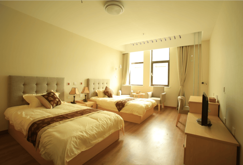 3. 设施优势:分区照护+智能设备,安全又安心占地约1万平米,五层建筑分区明确:一层综合服务区和社区食堂,二至三层失智照护专区,四至五层失能及高龄照护专区,实现“分类照护、精准服务”,避免不同需求长者相互干扰。房间配备护理床(带报警器)、智能床垫、智能制氧仪、智能马桶、一键式无线呼叫器等智能设备,实时监测长者身体状况,一旦出现异常,医护人员可快速响应。二楼还有1500平方米室外疗愈花园,适合长者户外休闲、康复锻炼,兼顾安全性与舒适性[3]。